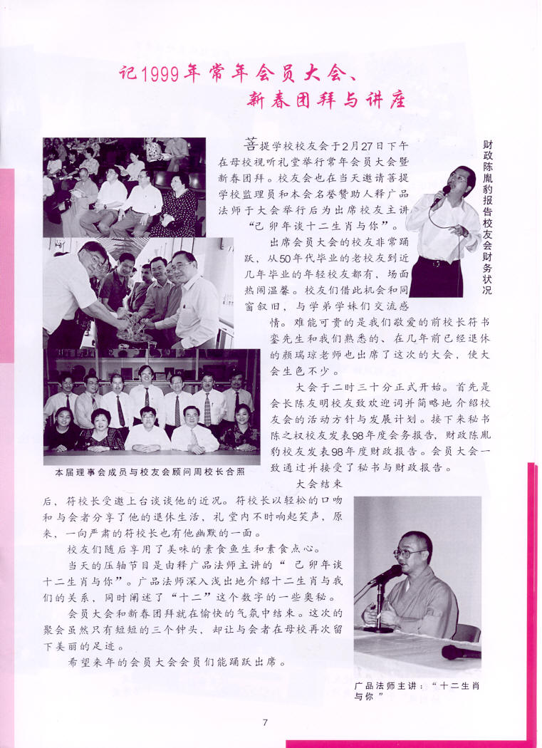 记1999年常年会员大会、新春团拜与讲座