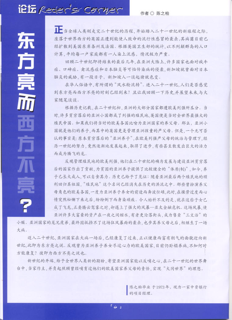 论坛—东方亮而西方不亮?