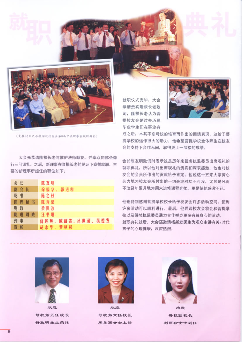 菩提学校校友会第8届中央理事会就职典礼盛况